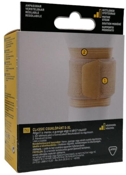 A csuklópánt segít csökkenteni a csukló mozgását, így védelmet nyújt rándulások és ínhüvelygyulladás esetén. Diszkrét kialakítása miatt ruházat alatt is viselhető