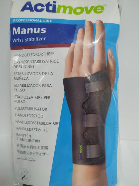 A biomechanikus szakemberek által tervezett, négy méretben kapható Actimove Manus csuklórögzítő ín-és ízületigyulladás, rándulás, húzódás esetén, valamint operációt követően használható. Neoprén-és latexmentes anyaga kényelmes és bőrbarát viseletet biztosít. Ergonomikus kialakításának köszönhetően formája követi a test vonalát, így biztosítva az anatómiai viszonyoknak megfelelő gyógyulást, támasztást és rögzítést. Indikáció: