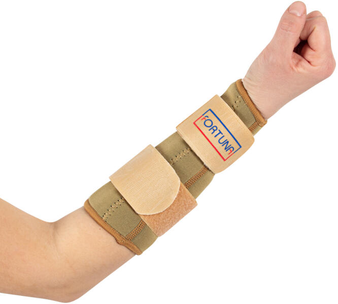 A Fortuna neoprén alkar bandázs erősíti a könyök izmait, megakadályozza az inak túlterhelését és biztosítja az erő egyenletes eloszlását. Ez a neoprénből készült bandázs melegítő hatású és javítja a vérkeringést. A frottír bélés felszívja a nedvességet, így kényelmet biztosít, így ez a bandázs mindennapi használatra is alkalmas. Állítható méretének köszönhetően a  Fortuna neoprén alkar bandázs sport- és munkahelyi használatra egyaránt alkalmas. A Fortuna neoprén alkar bandázs  jobb és bal karon is használható.
