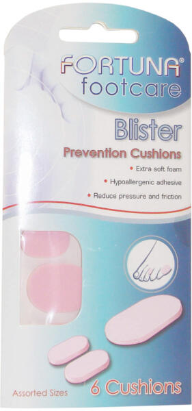 A Fortuna vízhólyag-megelőző párna (6 db) puha habanyagból készült, és segít csökkenteni a nyomást és a súrlódást a láb érzékeny területein, így megelőzve a vízhólyagok kialakulását.