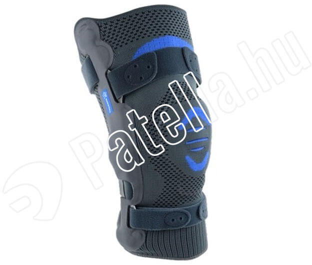 A térdízület maximális stabilitását és tehermentesítését az ortézisbe épített szabad ízületes fém oldalsínek (TM5+) és az ellentétes behúzású rögzítő pántok biztosítják.