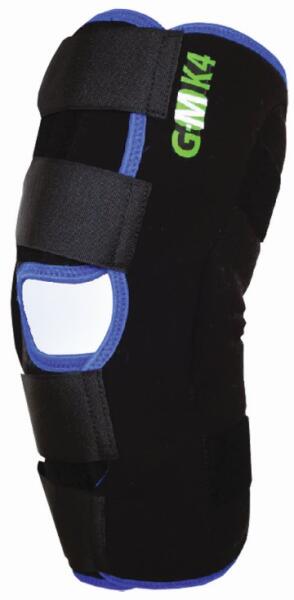GM-K4 nyitott térdortézis szivacsos anyagból készült. A patellánál nyitott kivitele hozzájárul a kényelmes viselethez, és megkönnyíti az eszköz felhelyezését.