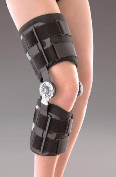 A GM-K12 térdortézis bőrbarát, jól szellőző, préselt frottír anyagból készült, állítható mozgásterjedelmű térdrögzítő, a két oldalán 4 tengelyes, 3,2 cm széles, 3 mm vastag fém sínnel.