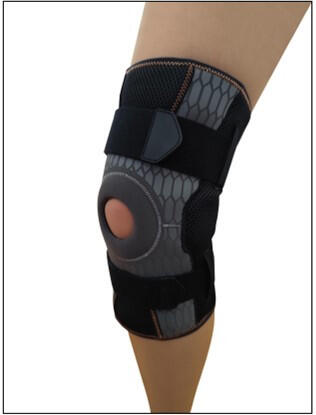 A GM-K8 zárt térdortézis jól szellőző, hálós anyagból, 2 darab kéttengelyes oldalsínnel és patella nyílást megtámasztó gyűrűvel készül. Két széles, nem rugalmas tépőzáras szíj segíti a megfelelő rögzítést. Szürke, egyedi mintázata attraktív megjelenést kölcsönöz. Megfelelő méret a comb térd feletti körmérete alapján választható.