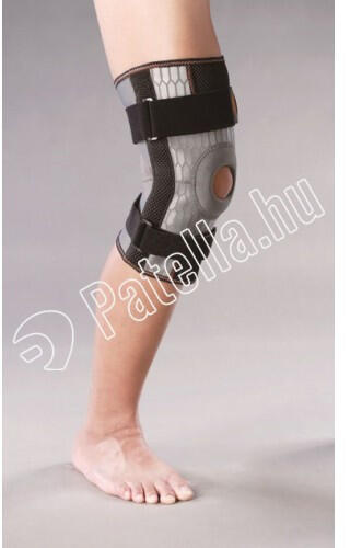 A GM-K8 térdortézis 2db kéttengelyes oldalsínnel és patella nyílással ellátott, a patellát megtámasztó gyűrűvel rendelkező jól szellőző anyagból készült térdrögzítő. Két széles, nem rugalmas tépőzáras szíj segíti a megfelelő rögzítést. Indikáció: - Térdízületi instabilitás, - Időskori térdízületi elváltozások, - Fájdalmak, - A térdizületben arthrózis, arthritis, térdízületi hiperextenzió, - Postoperatív kezelések esetén javasoljuk használatát olyan esetekben, amikor a térdízület stabilitása, tehermentesítése szükséges. Kiszerelés: