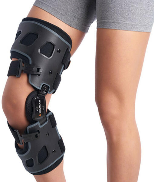 Termék jellemzői: - hatások: Belső vagy külső térizületi kondilusok a comb/láb tengelyirányú eltérésének megvalósításához. A térd mediális vagy laterális mechanikus tehermentesítése. Az ízületi mozgástartomány stabilizálása és korlátozása. Fájdalomcsillapítás. - Javallatok: Enyhe vagy közepesen súlyos unicompartmentális térdízületi osteoarthritis (mediális vagy laterális). Genu valgum vagy varum asszociált tengelyeltérések. - Könnyű és ergonomikus kialakítású, a végtag morfológiájához igazodik, és alkalmazkodik az anatómiai alakváltozásokhoz a tevékenységek során. - A comb és a vádli merev szerkezeteit egy ízület köti össze, amely lehetővé teszi a hajlítás és a nyújtás szabályozását. - A merev részek profilja kisebb sűrűségű műanyagból készült a használat kényelmének javítása érdekében. Az ízület előre telepített ütközővel van ellátva, amely 0°-ban rögzíti a hosszabbítást (megakadályozza a túlnyúlást), valamint egy csavarhúzóval, amely lehetővé teszi az ütközők megváltoztatását a hajlítás/nyújtás szabályozásához. - A habszövet védelmek légáteresztőek, mosáshoz könnyen eltávolíthatók. Az ízület és a combdarab közötti kapcsolat egy csuklópánttal rendelkezik, amely lehetővé teszi a varus vagy valgus axiális beállítását a térd terheléselosztásának javítása érdekében. Gyors, biztonságos és könnyen kezelhető zárórendszerrel rendelkezik, amely lehetővé teszi a merevítő kényelmes és hatékony rögzítését és eltávolítását. - EXTENSIO mértéke: 0º, 10º, 20º, 30º, 40º - FLEXIO mértéke: 0º, 10º, 20º, 30º, 45º, 60º, 75º, 90º - egy méretben és mindkét lábon használható