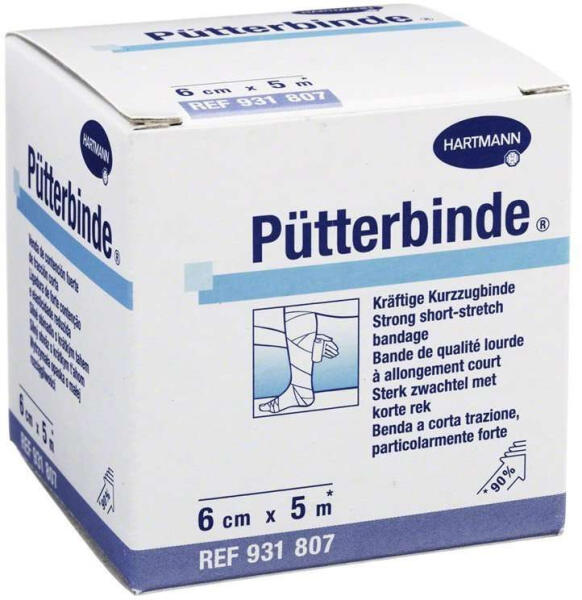 Erős, rövid megnyúlású (kb. 90%), bőrszínű kompressziós pólya.