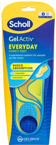 A Scholl GelActiv férfi cipőbetétek mindennapi használatra kettős gélt tartalmaznak, amely hatékonyan enyhíti a nyomást és csökkenti a mindennapi járás és tevékenységek okozta túlzott terhelést. A keményebb gél támasztja a lábíveket és a sarokat, míg a puhább gél kiváló rugalmasságot és nyomáscsökkentést biztosít, ami egész napos kényelmet és könnyed járást eredményez. Méret S: 35,5 - 40,5