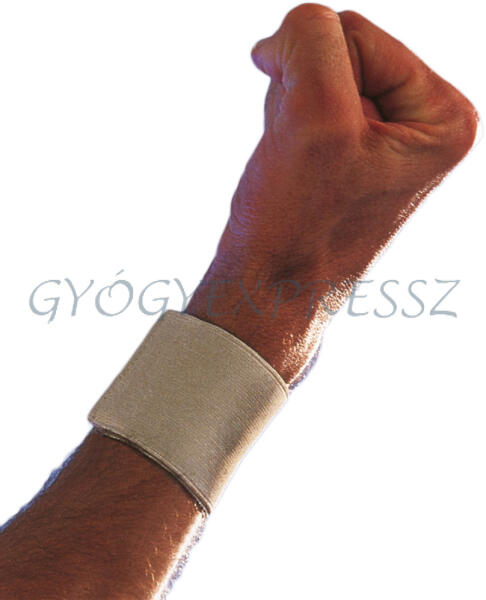 Szabályozható rugalmas csukóvédő, (csuklószorító) mely úgy nyújt védelmet az ízületnek, hogy közben a mozgásban nem akadályozza. Tépőzárral van ellátva. Bézs színben 6 cm széles. Higiéniai termék. Méretezés csukó körméret alapján cm-ben: